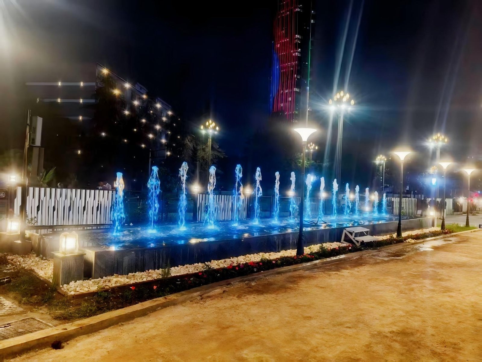 يتكون مشروع نافورة الموسيقى هذا في إثيوبيا، الذي صممته ونفذته شركة Changsha Himalaya Music Fountain، من حوضين مجهزين بما مجموعه 32 مجموعة من أنظمة نافورة VFD المتموجة والمتتابعة.